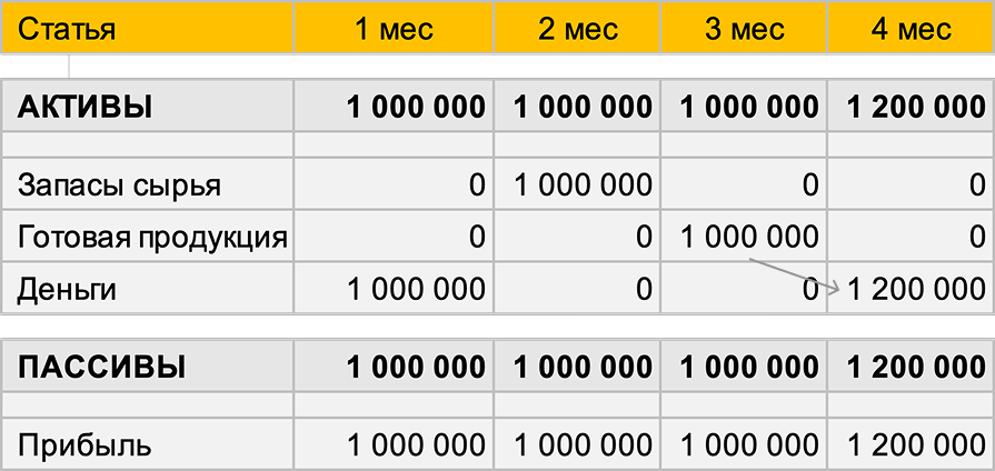 И ваш 1 млн ₽ перекочевал из запасов в готовую продукцию. Прибыль по-прежнему 1 млн ₽. Но вы не можете её выплатить. Вам просто — нечем.