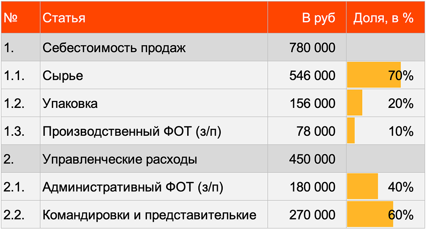 Значит берем эти расходы и раскладываем их структуру.