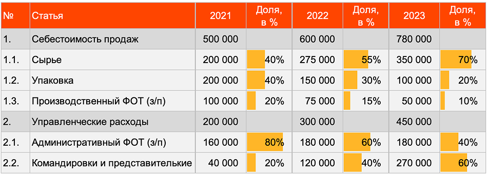 Короче, вертикальный анализ — это когда мы анализируем структуру расходов.