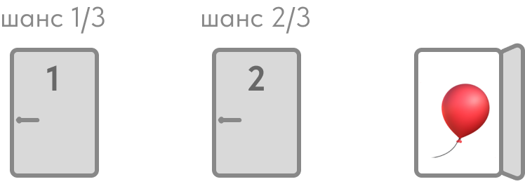 Вы выбрали дверь №1, а я открываю дверь №3 и показываю, что за ней — шарик 🎈