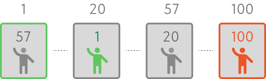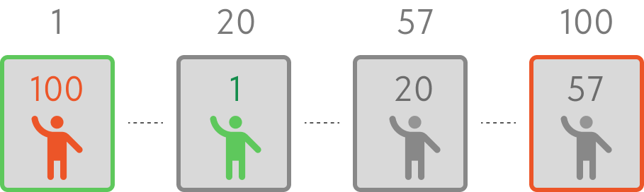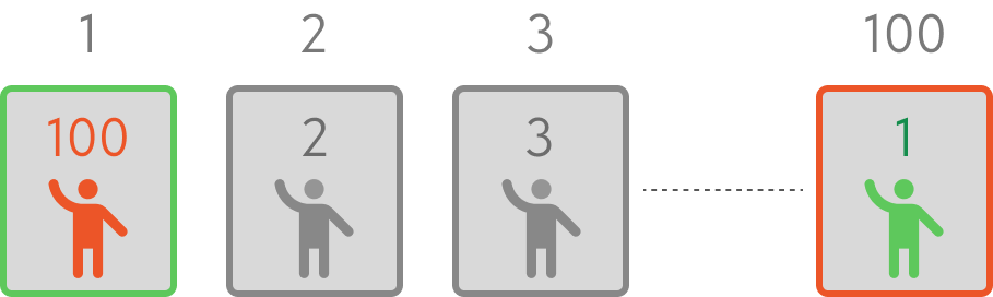 Вы можете сколько угодно раз менять выбор места любого промежуточного зрителя, но в конечном итоге, кто-то из них займет либо место №1, либо место №100.