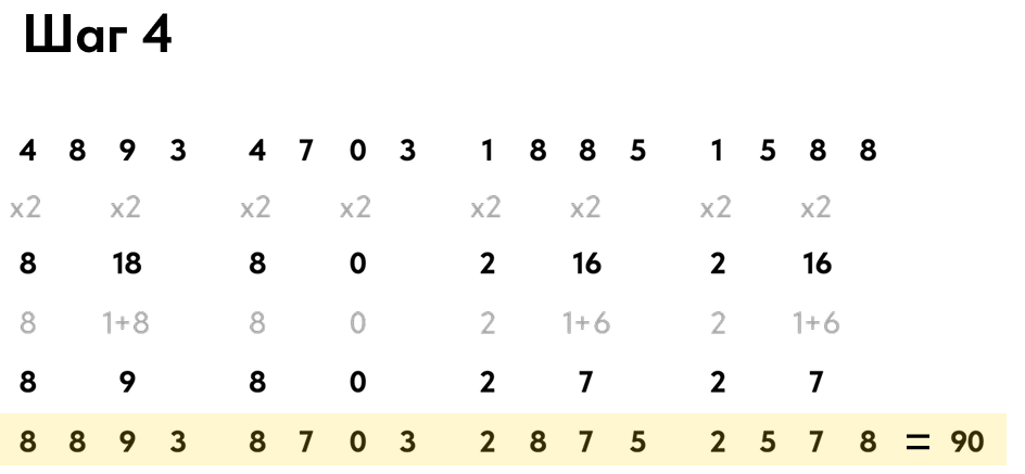 Чтобы проверить вашу банковскую карту по алгоритму Лýна, нужно сделать 4 шага.
